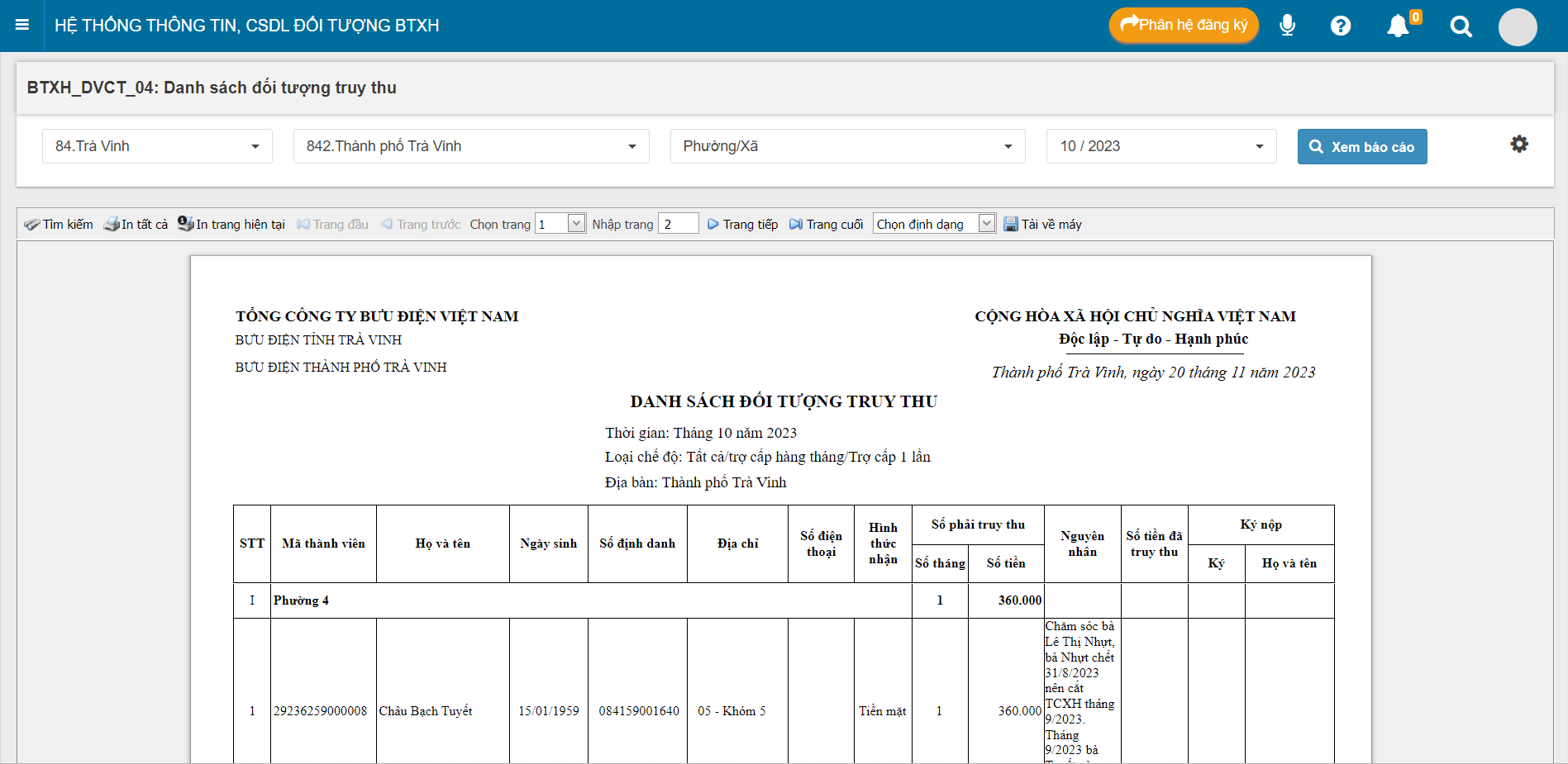 ## 6. Lập danh sách chi trả cho toàn huyện, hệ thống báo bận hoặc tải dữ liệu rất chậm