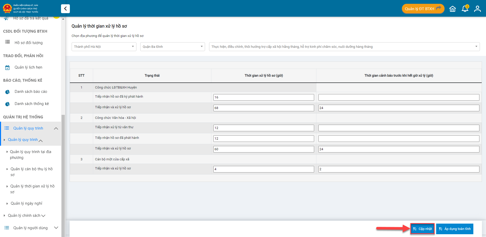 :star: **Bước 3:** Sau khi chọn xong các các bước, anh chị nhấn **Cập nhật** để lưu lại.