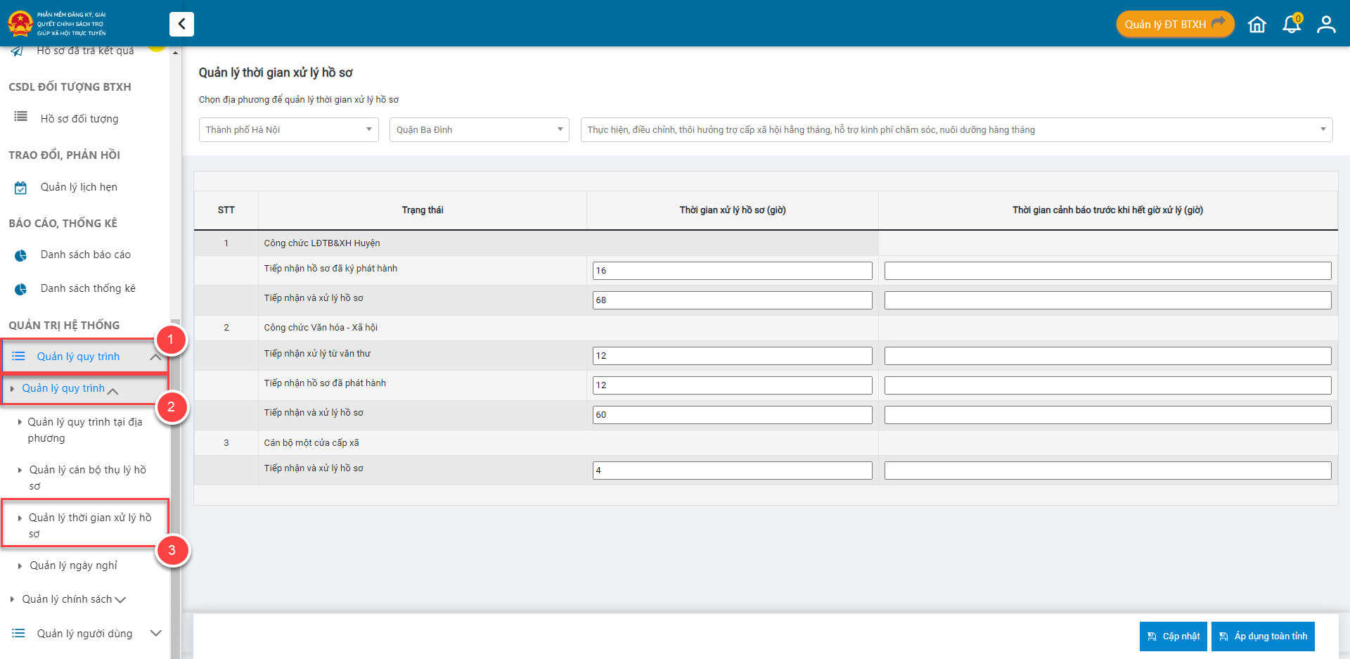 # 4. Thiết lập Thời gian xử lý hồ sơ