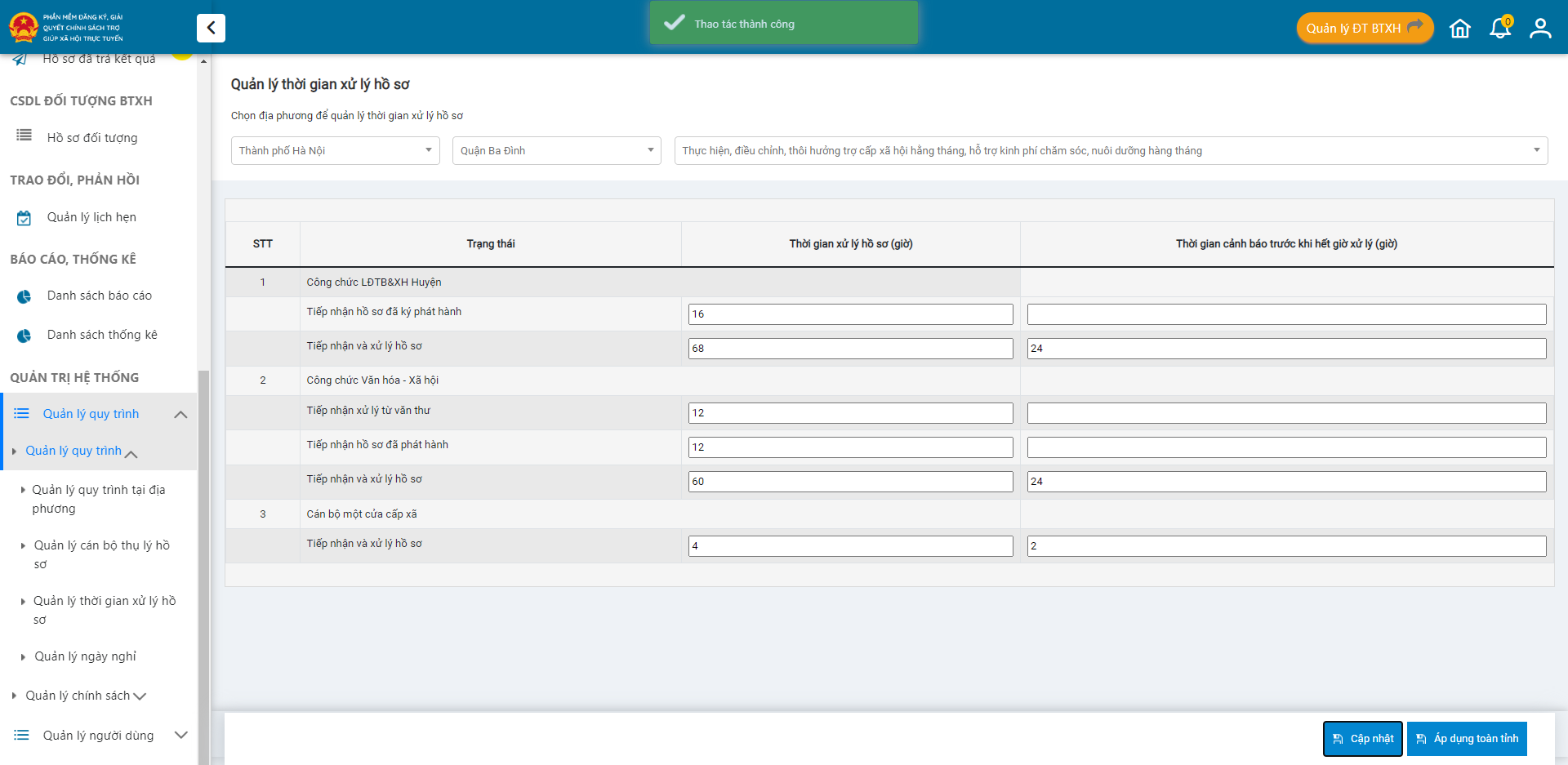 &#x20;<mark style="color:green;">**Anh/ chị đã cập nhật thành công Quy trình thiết lập thời gian xử lý hồ sơ.**</mark>&#x20;